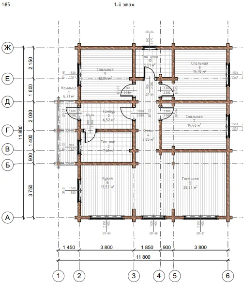 Проект дома из бруса Д-180 (135 м.кв.)