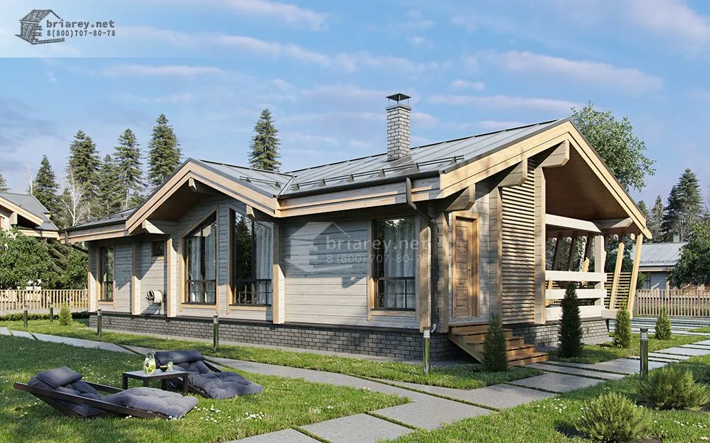 Проект одноэтажного дома из бруса с терассой